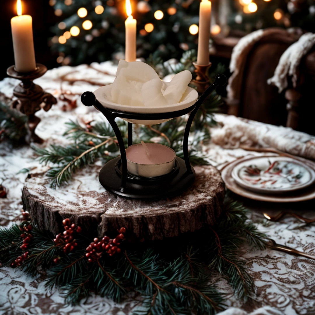 Použití je jednoduché: umístěte ručně vyrobený vosk ze sójového vosku do keramické misky, zapalte dole čajovou svíčku a sledujte, jak se vosk pomalu rozpouští a naplňuje místnost kouzelnou vánoční vůní.