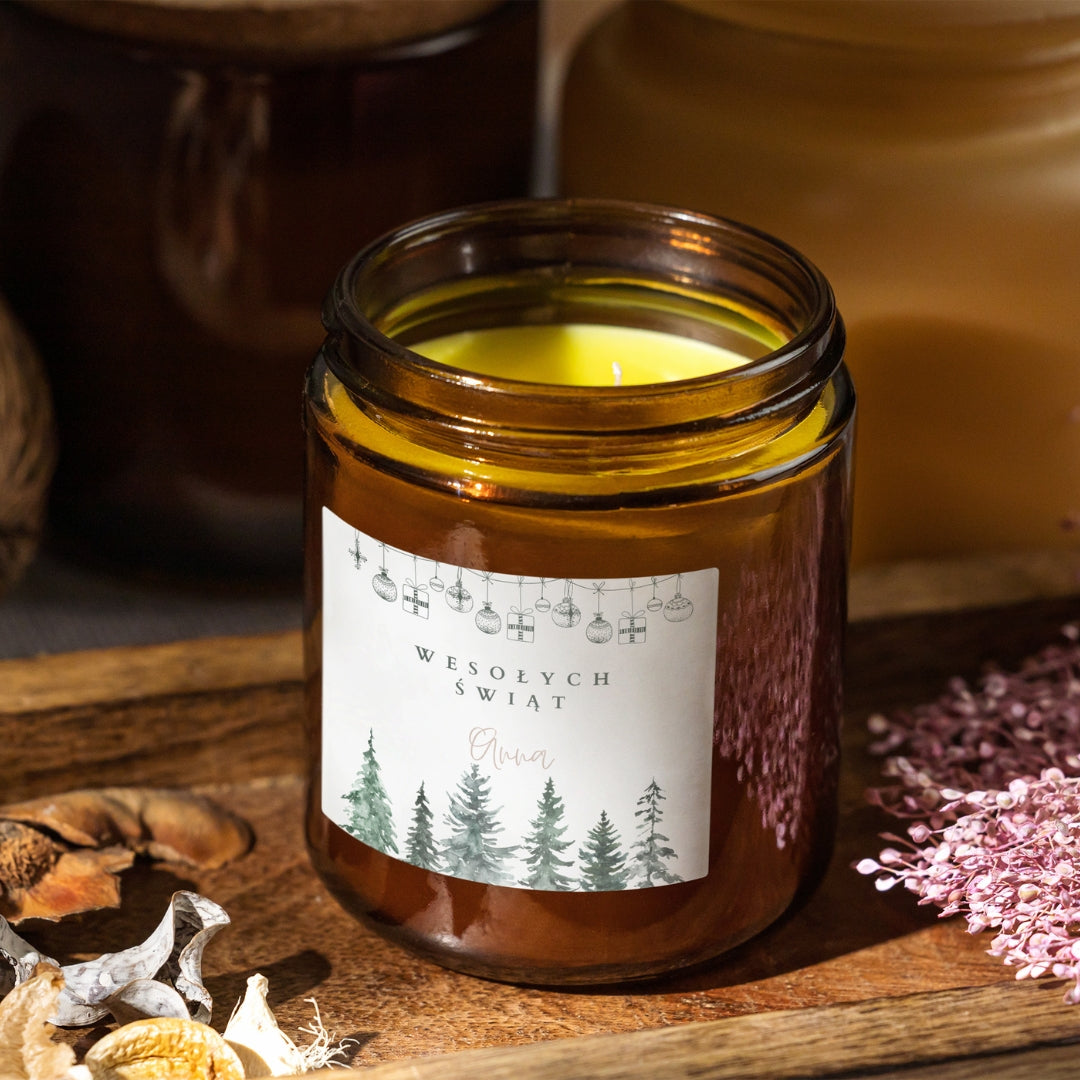 💌 Personalizacja – świeca zawiera napis „Wesołych Świąt!”, ale możesz wpisać dowolny tekst, który chcesz umieścić na etykiecie.