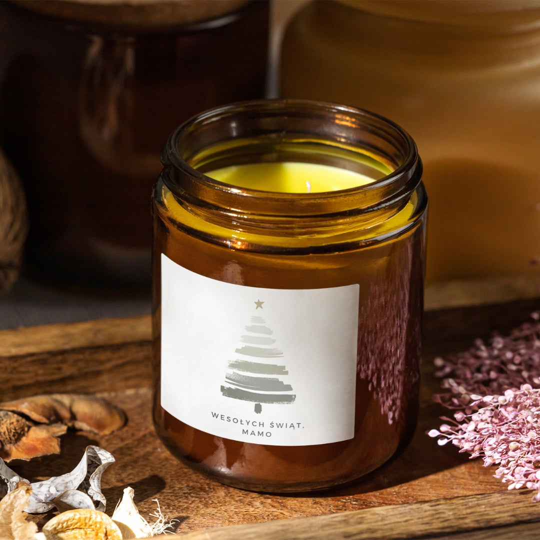💌 Personalizacja – świeca zawiera napis „Wesołych Świąt!”, ale możesz wpisać dowolny tekst, który chcesz umieścić na etykiecie.