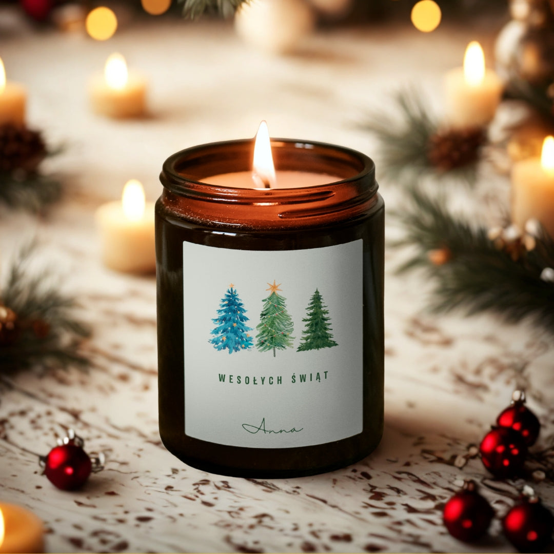 💌 Personalizacja – świeca zawiera napis „Wesołych Świąt!”, ale możesz wpisać dowolny tekst, który chcesz umieścić na etykiecie.